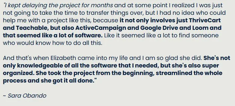 Through my on-going training and hands-on experience, I use my tech software and automation expertise to build out the tech required for launches and other steps along the customer journey.